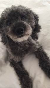 Linda’s “dog friendly” moment is about her silver and gray Miniature Schnauzer she grew up with named Candy. She was 19 pounds and could be picked up just like a child. There was one moment where she truly acted “childish”. It was Linda’s birthday and her mother went to get the birthday cake. We heard a big scream followed by laughter. There was Candy on top of the table enjoying the cake prior to the party!